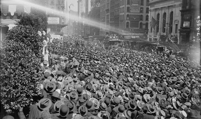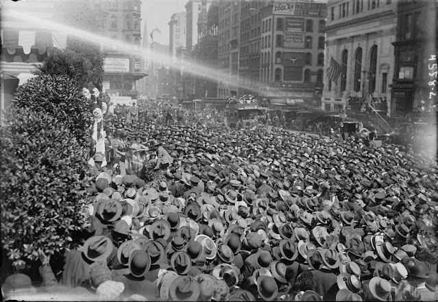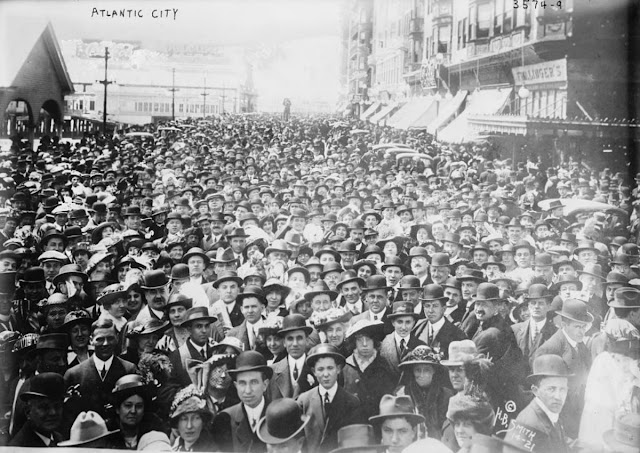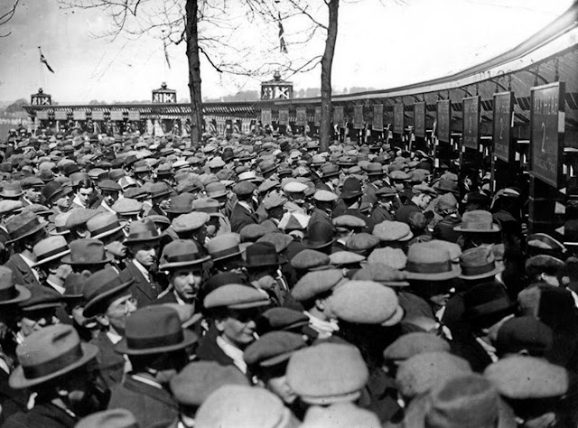 Below are some vintage photographs around the turn of the 20th century show seas of caps and hats in just about every crowd shot.