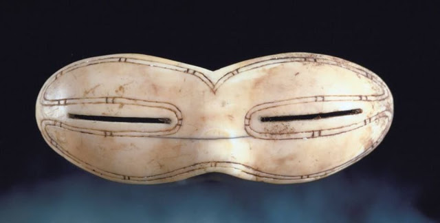 The above pictured snow goggles, discovered some 800 years ago on Canada’s Baffin Island, were designed to protect the eyes from snow-blindness caused by the bright spring sunlight.