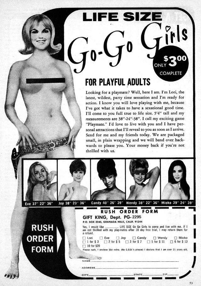 14 Bizarre Vintage Ads of Life-Size Inflatable Love Dolls in the 1970s April 24, 2020 Vintage Everyday 1970s, ads, dating & love, wtf 0 This post was originally published on this site According to the ads, there was a “money-back guarantee” within 10 days if you weren’t 100% “satisfied” with your love doll. See more »