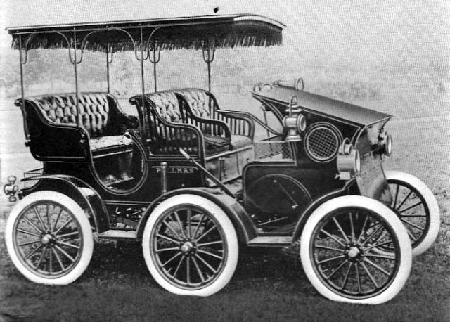 A. P. Broomell’s first car was a 6-wheeler built in York, Pennsylvania. The Pullman six wheeler was named after the popular Pullman Palace Car Company founder George Pullman who manufactured railroad cars beginning in the late 1800s.
