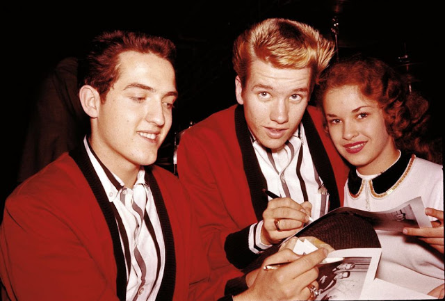 In December of 1957, the Casuals were fronted by a couple of 17-year-olds from Nashville named Richard Williams (left) and Buzz Cason (right). Here the young stars sign autographs for fans.