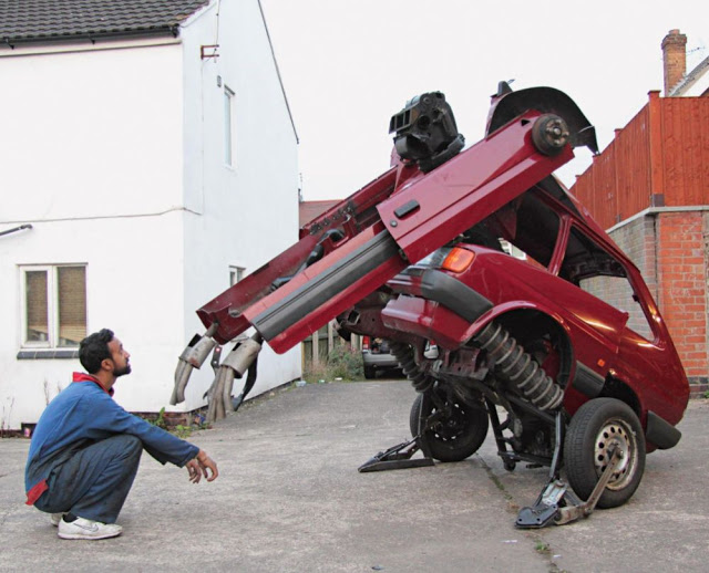 When UK-based artist Hetain Patel was gifted a 1988 Ford Fiesta as his first car when he turned 17, he likely could not have realized the influence it would have on his artistic career. In 2013, Patel has taken an acquired vehicle, with the exact same specifications as his now-vintage original, and turned it into ‘Fiesta Transformer’, a large-scale construction mimicking the robotic alien creatures from the widely recognizable film and toy franchise ‘Transformers’.