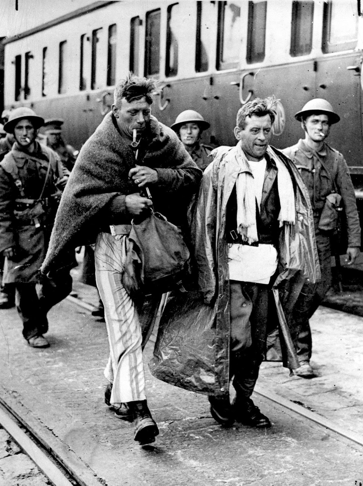 Troops of the British Expeditionary Force landed from a destroyer at a British Port on June 1, 1940 after being evacuated following heroic fighting from Flanders.Troops of the British Expeditionary Force landed from a destroyer at a British Port on June 1, 1940 after being evacuated following heroic fighting from Flanders.