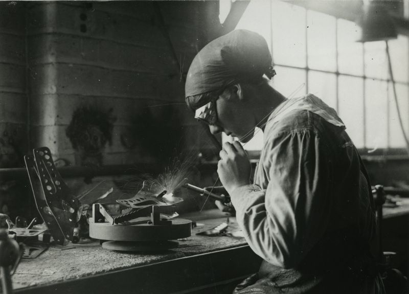 British women aeroplane workers near Birmingham welding frame tugs for planes