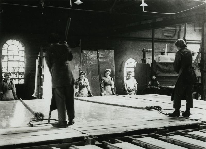 British women glass workers in a factory in Lancashire – Plaster house workers