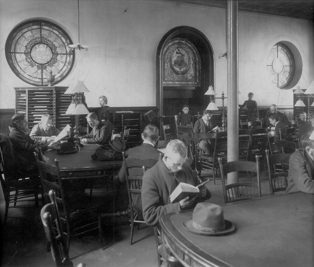 Cast-iron book alcoves lined the sides of the Main Hall.