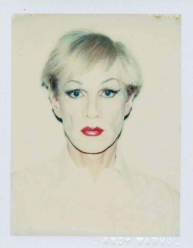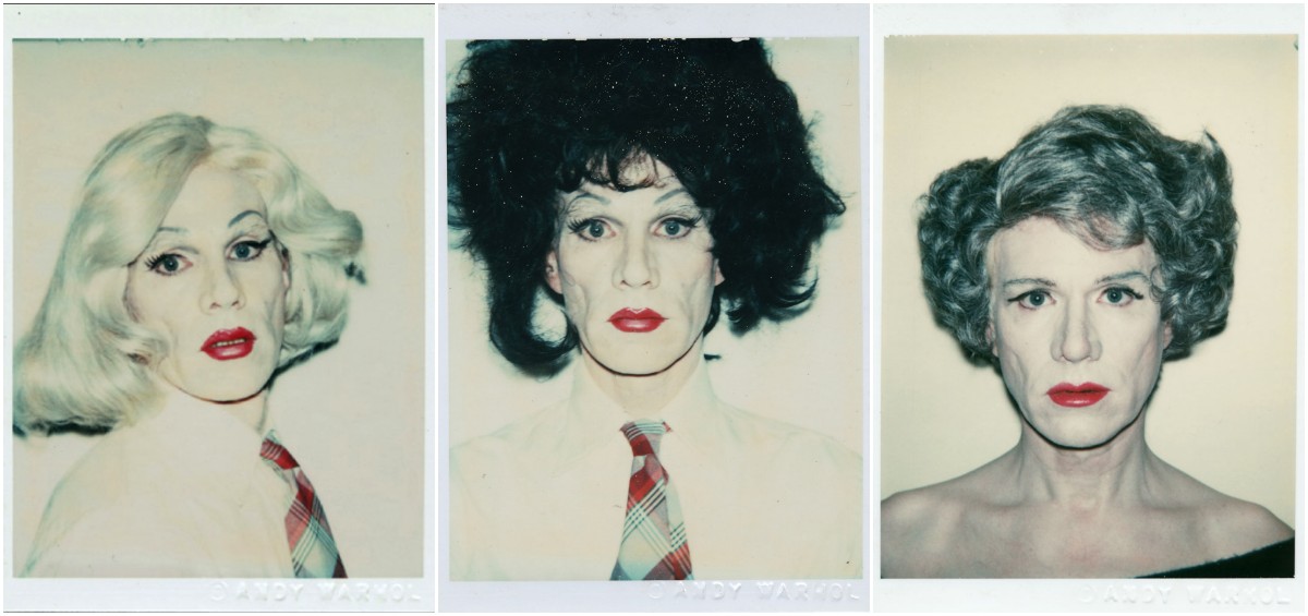 Warhol and Makos made a number of pictures, both black and white prints and color Polaroids, of their first attempt. For the second round of pictures, they hired a theatre makeup person. This stage professional better understood the challenge of transforming a man’s face into that of a woman. After the makeup, Warhol tried on curled, straight, long, short, dark, and blonde wigs.