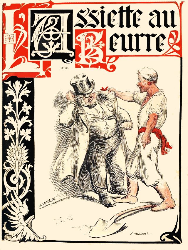 L’Assiette au Beurre (literally The Butter Plate, and roughly translating to the English expression pork barrel) was an illustrated French weekly satirical magazine with anarchist political leanings that was chiefly produced between 1901 and 1912. It was revived as a monthly for a time and ceased production in 1936.