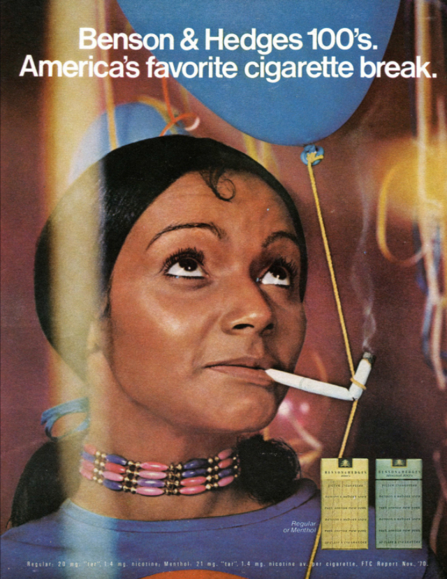 In July 1968, Philip Morris released Virginia Slims which were a spin-off of Benson & Hedges intended to be sold to women. They were sold during a period of time where society was beginning to realize the dangers of smoking. Therefore, they were a thinner and more “elegant” alternative to regular cigarettes.