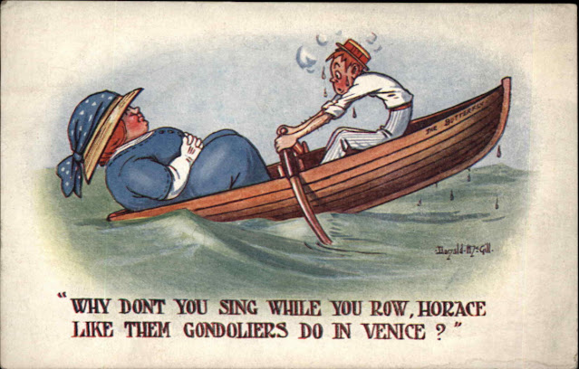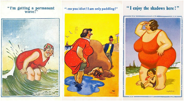 Donald McGill (January 28, 1875 – October 13, 1962) was an English graphic artist whose name has become synonymous with the genre of saucy postcards, particularly associated with the seaside (though they were sold throughout the UK). The cards mostly feature an array of attractive young women, fat old ladies, drunken middle-aged men, honeymoon couples and vicars. He has been called “the king of the saucy postcard,” and his work is collected and appreciated for his artistic skill, its power of social observation and earthy sense of humor. Even at the height of his fame he only earned three guineas a design, but today his original artwork can fetch thousands of pounds.