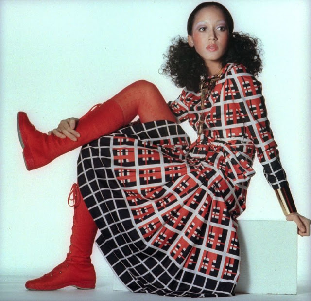 Born 1950 in New York City, Pat Cleveland is an American fashion model. Her career as a model began in 1966 when she was on a subway platform with a friend en route to class and was noticed by the assistant to Carrie Donovan, fashion editor at Vogue. Donovan, impressed by Cleveland’s fashionable clothing, invited her to tour the Vogue offices and the magazine subsequently published a feature on her as an up-and-coming young designer.