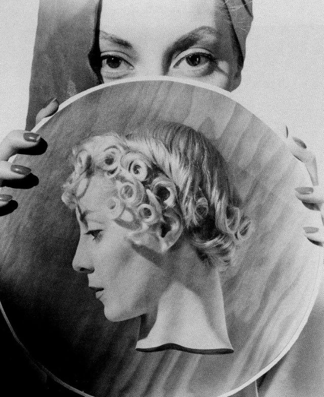 Helen Bennett holding image of her profile, photo by Horst P. Horst, 1936
