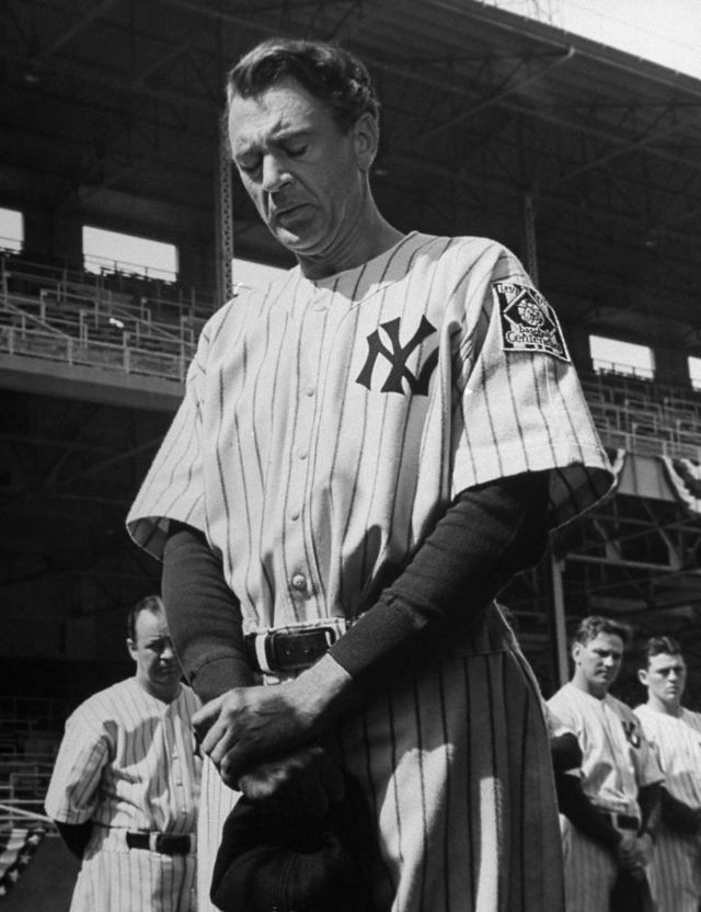 The Pride of the Yankees is a 1942 American film produced by Samuel Goldwyn, directed by Sam Wood, and starring Gary Cooper, Teresa Wright, and Walter Brennan. It is a tribute to the legendary New York Yankees first baseman Lou Gehrig, who died only one year before its release, at age 37, from amyotrophic lateral sclerosis, which later became known to the lay public as “Lou Gehrig’s disease”.
