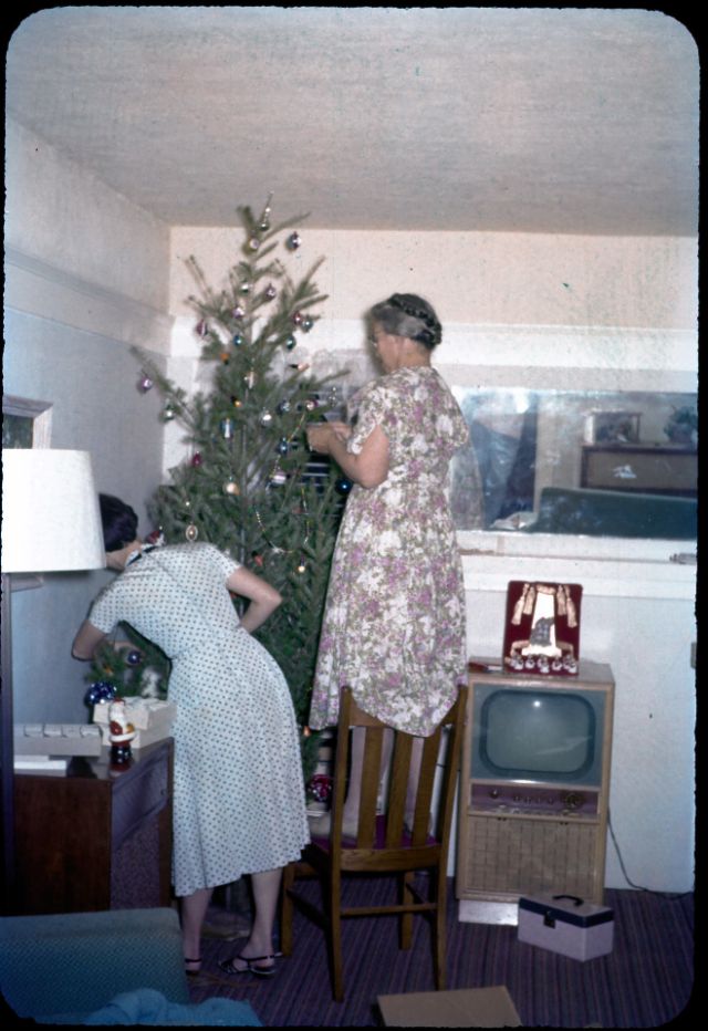 Here below is a vintage photo collection that shows people decorating their Christmas trees in the past.
