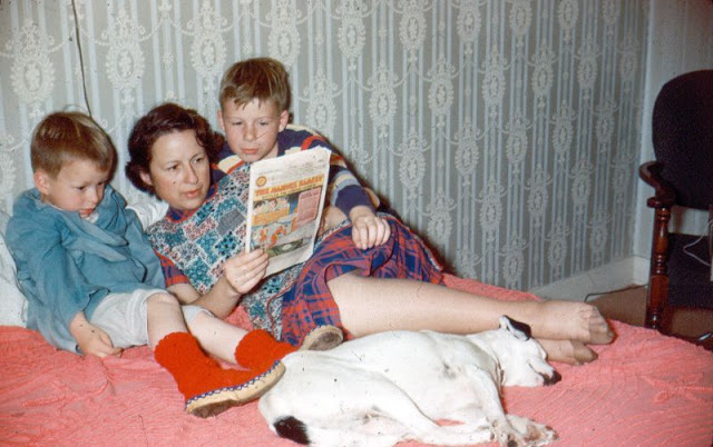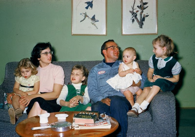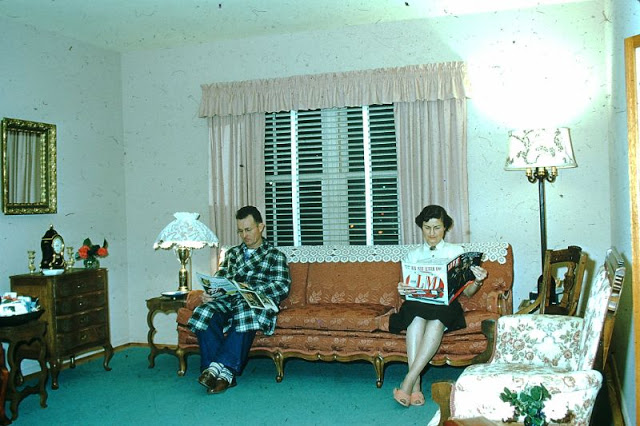 No internet, no smartphones, just reading, chatting, playing musical instruments, gathering around the TV set, watching TV and eating dinner, etc. A set of vintage color photos shows what people often did at home in the 1950s.