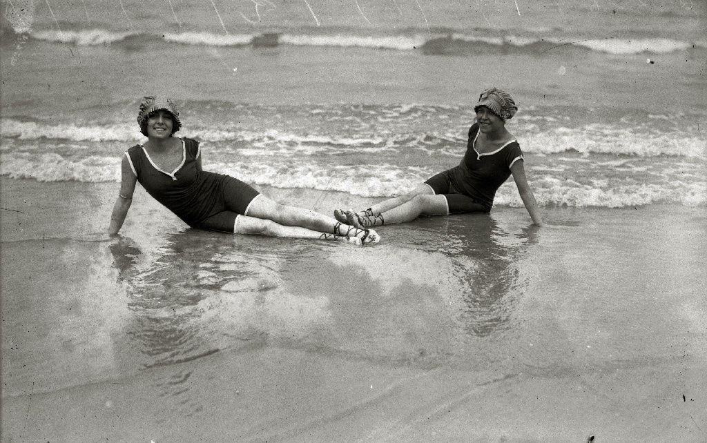 The name “swim suit” was coined in 1915 by Jantzen Knitting Mills, a sweater manufacturer who launched a swimwear brand named the Red Diving Girl. The first annual bathing-suit day at New York’s Madison Square Garden in 1916 was a landmark. The swimsuit apron, a design for early swimwear, disappeared by 1918, leaving a tunic covering the shorts.