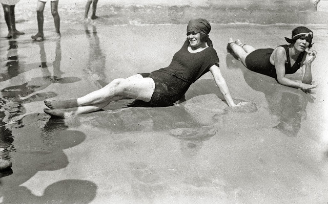 Despite opposition from some groups, the form-fitting style proved popular. It was not long before swimwear started to shrink further. At first arms were exposed and then legs up to mid-thigh. Necklines receded from around the neck down to around the top of the bosom. The development of new fabrics allowed for new varieties of more comfortable and practical swimwear.