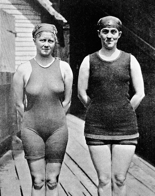 Female swimming was introduced at the 1912 Summer Olympics. Competitors from 17 countries took part, with women from nine countries wearing swimsuits similar to Kellerman’s swimsuit, which were similar to swimsuits worn by the male swimmers.