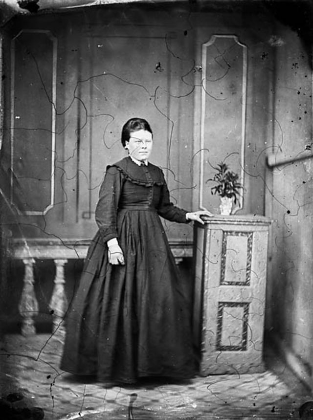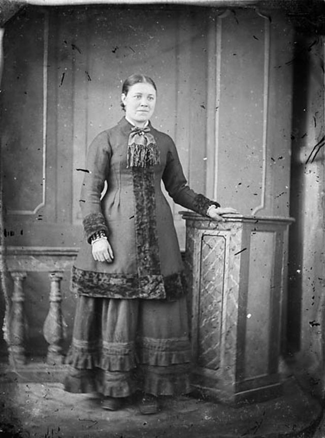 John Thomas (1838-1905) came originally from Cellan, Ceredigion and established a studio known as ‘The Cambrian Gallery’ in Liverpool (various addresses) with a branch in Regent Street, Llangollen. He is famous for the large number of portraits of famous Welsh men, especially non-conformist ministers, which he took on his travels in Wales and he also recorded many buildings but among the surviving 3,000 glass plate negatives of superb quality, there are about 100 of women in Welsh costume. Many of these are labelled with the name of the subjects and the place they were taken. They were not dated but the earliest is pre 1865 and remainder are thought to be 1875 – 1885.