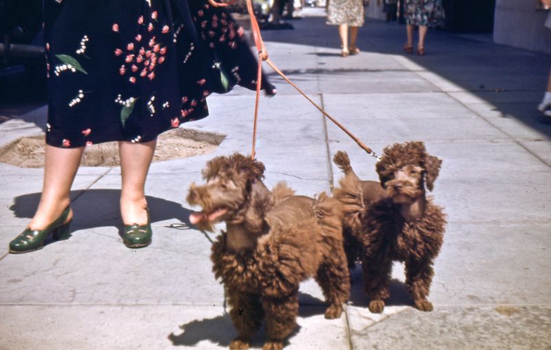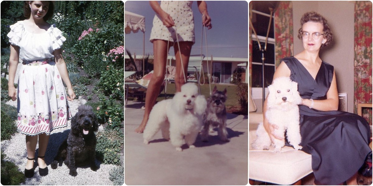 A set of cool vintage photos that shows people with their poodles in the 1950s and 1960s.