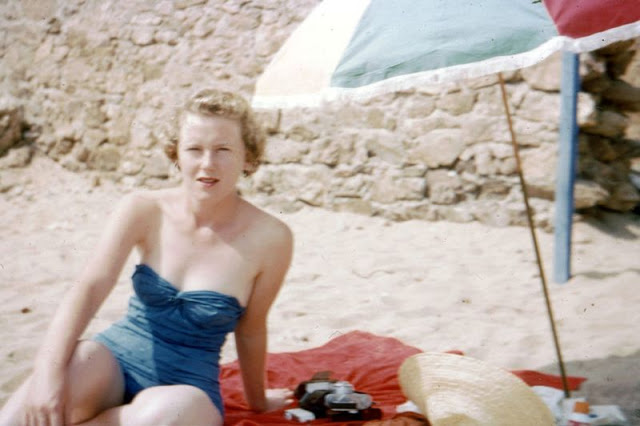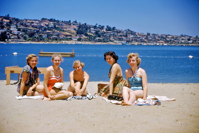These cool snaps show the swimsuits that women often wore in the 1950s.