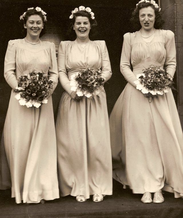 In the early 1940s, during the war, the fashion industry was heavily impacted by rationing. However, wedding dresses were exempt, meaning wedding gowns were free to be. Still, with the strong need for silk in various war materials, many women decided to go with the more sensible fabric: rayon.