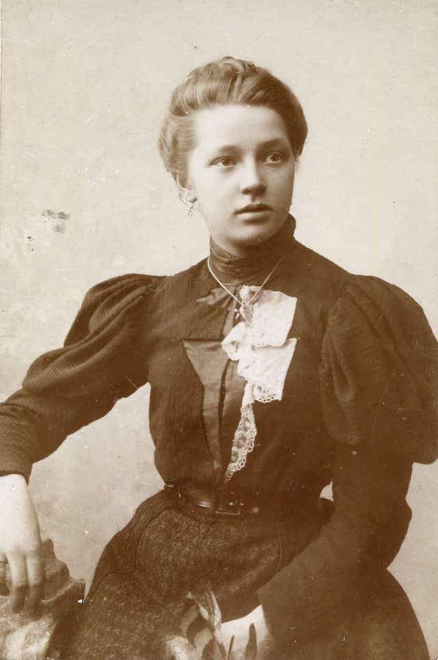 Portrait of a young woman at Sigrid Graff studio, Båstad, Sweden, circa 1900