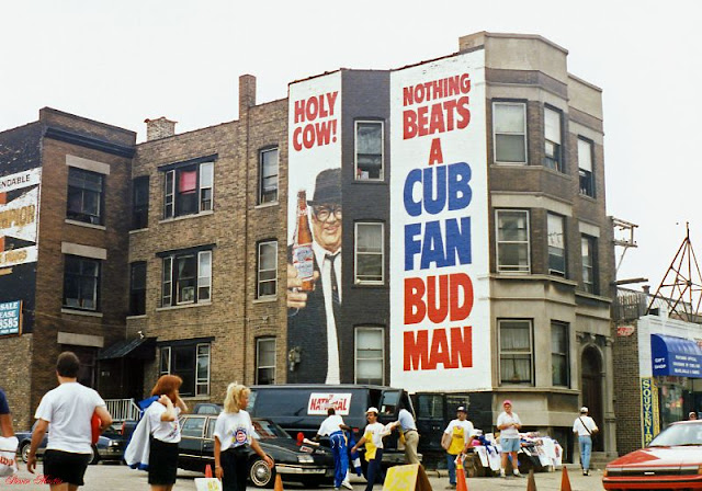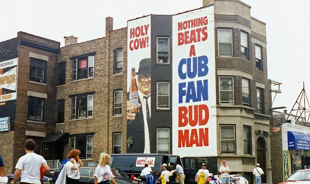 Budweiser ad featuring Harry Caray near Wrigley Field, Chicago, July 1990