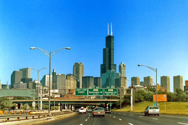 Chicago skyline from John F. Kennedy Expressway, 1990