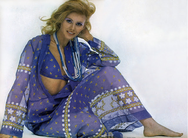 Britt Ekland embodied the 1970s blonde bombshell look — big hair, dramatic eyeliner, and chic fashion. Her style ranged from bohemian and free-spirited in her early 1970s years to sleek and disco-inspired later in the decade. She was often featured in magazines and photographed at parties, premieres, and fashionable London hotspots.