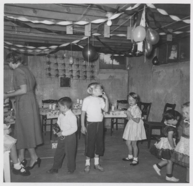 | Children at a party in the basement |
