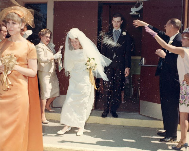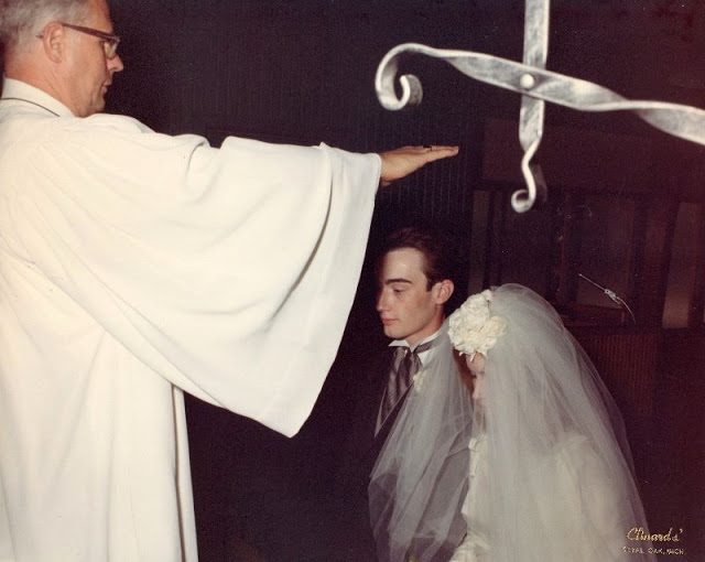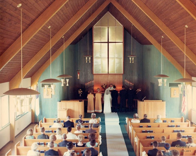 A set of lovely photos from Susan Hall Hornbeck Bixby that documented wedding of Susan Elizabeth Hall and Lawrence Charles Hornbeck on July 29, 1967 at Holy Cross Lutheran Church, Oxford, Oakland County, MI.