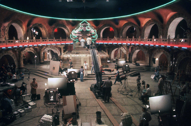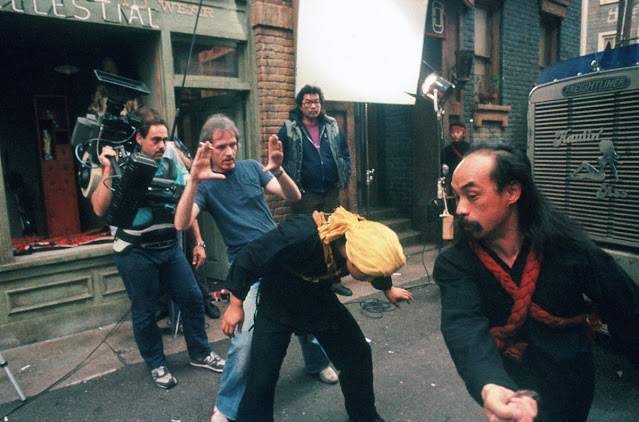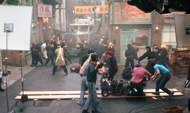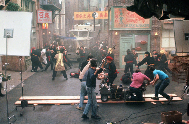 Although the early exterior establishing scenes were filmed on location in Chinatown, most of the film was shot on sets built in the Fox lot in Los Angeles. Production designer John Lloyd designed the elaborate underground sets and recreated Chinatown with three-story buildings, roads, streetlights, sewers and so on. This was necessary for the staging of complicated special effects and kung fu fight sequences that would have been very hard to do on location. This forced the filmmaker to shoot the film in 15 weeks with a $25 million budget. For the film’s many fight scenes, Carpenter worked with martial arts choreographer James Lew, who planned out every move in advance. “I used every cheap gag – trampolines, wires, reverse movements and upside-down sets,” Carpenter said. “It was much like photographing a dance.”