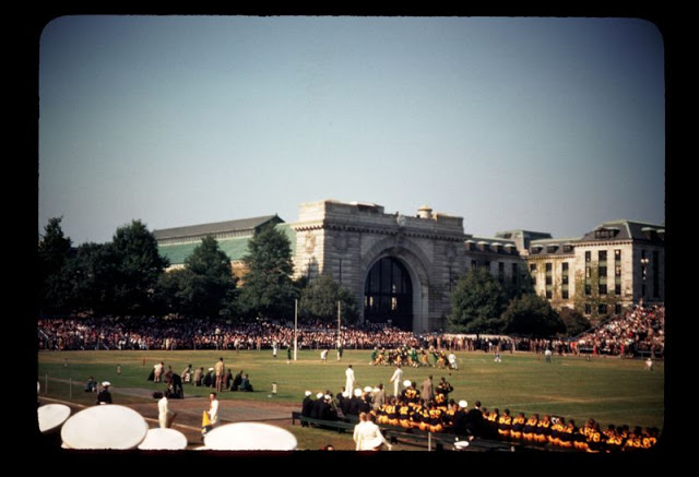 This football game between the USNA and William & Mary College is played at Farragut Field on the grounds of the USNA in the September 27, 1941