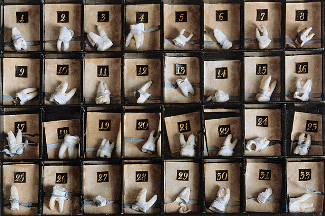 The passion for collecting is a full time job, an obsession. All collectors seem to have one thing in common, they believe passionately in what they collect. Here, a collection of teeth extracted by Peter the Great who, despite having no formal medical training, fancied himself to be a terrific amateur surgeon.