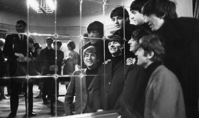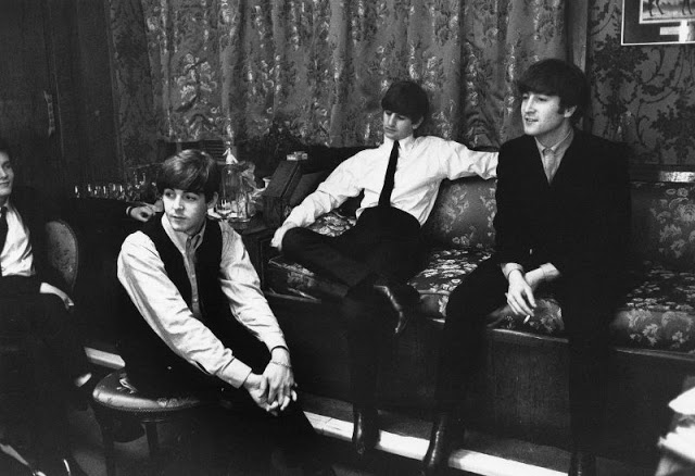 | The Beatles backstage for a 1963 Christmas concert |