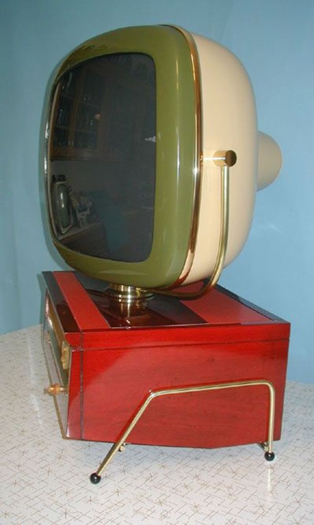The Predicta was marketed as the world’s first swivel screen television. The picture tube was surrounded in Eastman plastics new product called “tenite” which protected the glass and gave it its greenish tint. The Predicta also had a thinner picture tube than many other televisions at the time, which led it to be marketed as a more futuristic television set. The futuristic aesthetic was influenced by an interest in space age technology, prompted by Russia’s Sputnik launch in 1957. Philco’s advertisements for Predicta touted a “TV Today From the World of Tomorrow!”