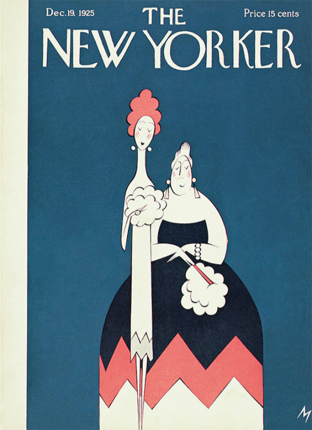 The New Yorker is an American magazine featuring journalism, commentary, criticism, essays, fiction, satire, cartoons, and poetry. It was founded on February 21, 1925, by Harold Ross and his wife Jane Grant, a reporter for The New York Times. Since the magazine’s founding, its holiday covers have evolved alongside societal changes while maintaining their distinctive artistic integrity.