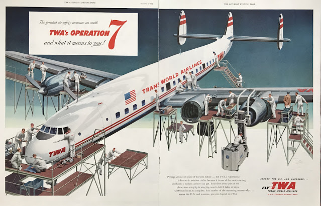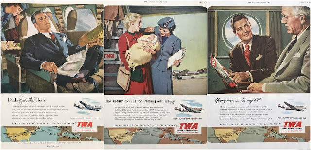 In 1946 TWA inaugurated international flights between New York City and Paris, quickly expanding by the 1950s to routes through Europe, the Middle East, Africa, and Asia. Here, below is a gallery of 80 amazing vintage advertisements of Trans World Airlines from between the 1940s and 1950s: