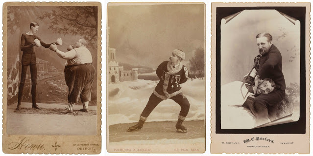 The four sections of the exhibition – Caught in the Act (actors, orators and other public figures); The Trade (commercial advertising); Sharing Life: Family and Friends (family albums); and Acting Out (people at play; reality and truth) – are logical partitions of these certain types of cabinet card. But what interests me more are the psychological aspects of having ones photograph taken. Why is the person’s photograph being taken, at whose direction (the photographers, the sitters)… who is posing the individual, what do they intend to convey through the image, who decides what that message is and, of course, how does the viewer decipher the message. “The interpretation of a person’s acting out and an observer’s response varies considerably, with context and subject usually setting audience expectations.”