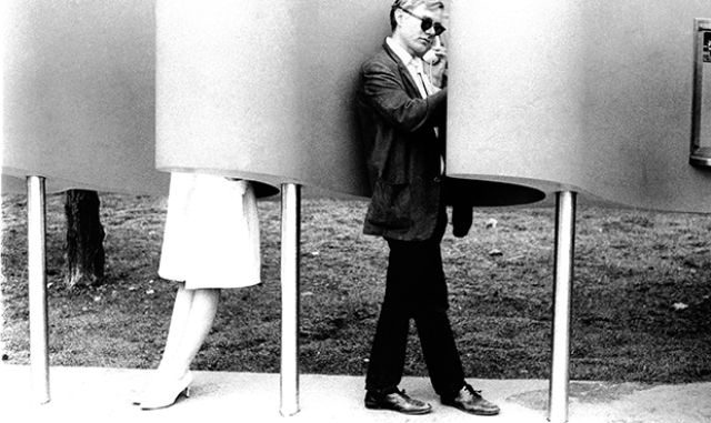 Andy Warhol on payphone at World’s Fair, 1964