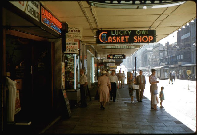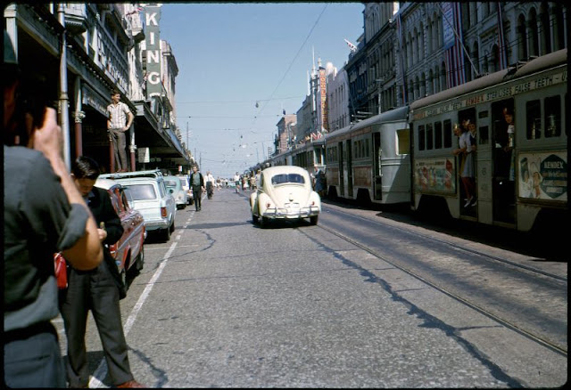 These amazing Kodachrome slides from Dave’s old slides captured street scenes of Australia in the 1960s.