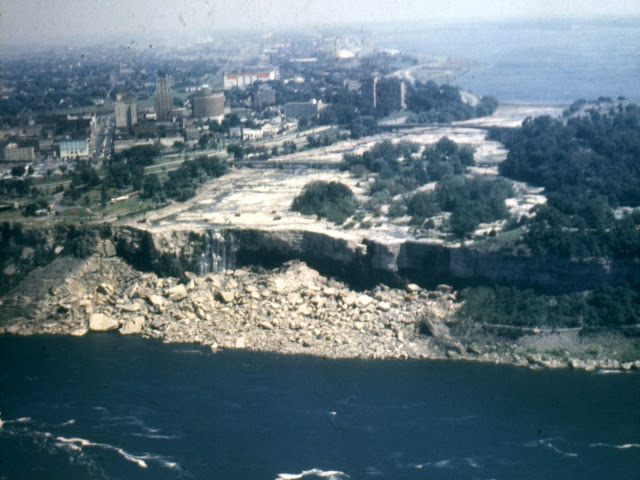 In 1969, the U.S. Army Corps of Engineers temporarily stopped the flow of water over the American Falls for several months to study long-term erosion and the buildup of fallen rock at the base. Authorities wanted to know whether the scenic appearance of the falls should be “restored” by removing the talus (the huge pile of boulders that had accumulated over decades).