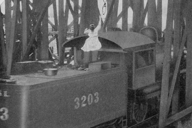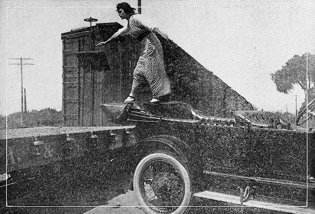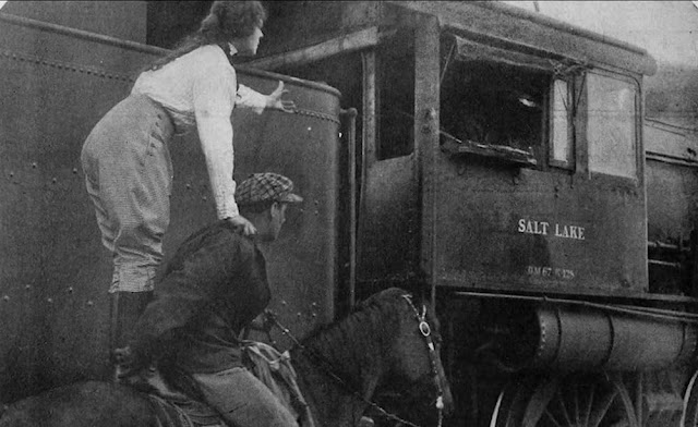 After replacing the original lead actress until the series ended in 1917, she became known thereafter as Helen Gibson. An early action star, she was billed as “The Most Daring Actress in Pictures” and “The Railroad Girl” (since so many of her films seem to have involved trains).