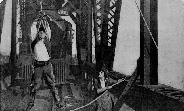 Another stunt was standing atop a detached team of running horses, catching a rope dangling from a bridge to swing down from the horses and onto a train as it came under the bridge. Another one was chasing a runaway train on a racing motorcycle, riding through a shattering wooden gate up to a station platform and right through the open doors of a boxcar on a siding, and flying through the air to land on the flat car of a passing train.