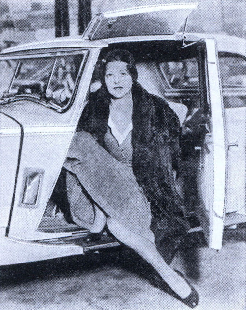 | This new British made auto is equipped with automatic trap door in the roof to prevent bumping the head. The hinged part swings upward with opening of car door. |