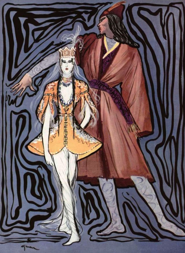 Costumes designed for the Ballet de Chota de Monte Carlo by Couturier Alex, illustrated by René Gruau, 1946