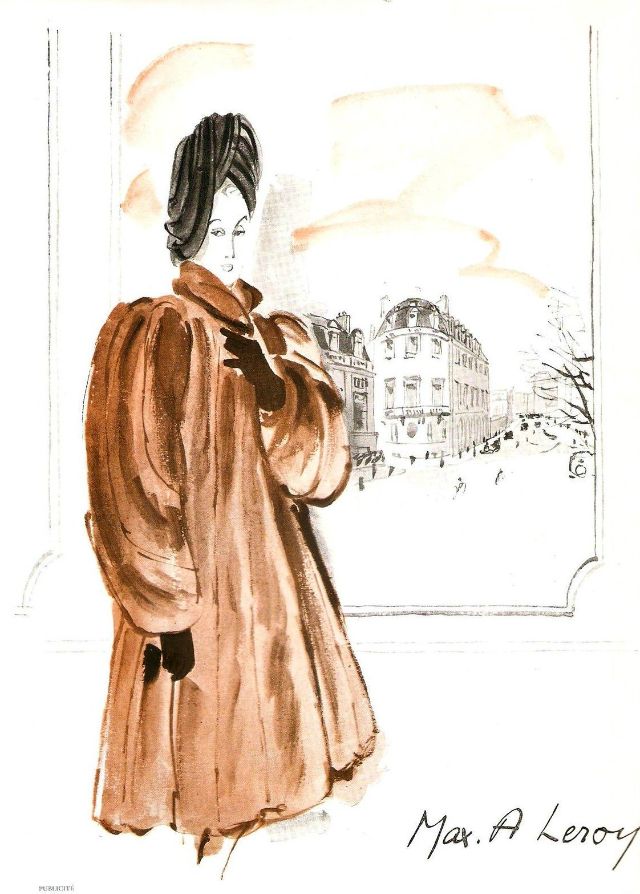 Fur coat by Max A. Leroy, illustrated by René Gruau, Autumn/Winter 1946-47