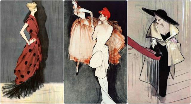 In addition to his international fame and recognition, “Gruau’s artwork is known for its timeless and enduring style”. Here below is a set of beautiful photos that shows fashion designs illustrated by René Gruau in the 1940s.