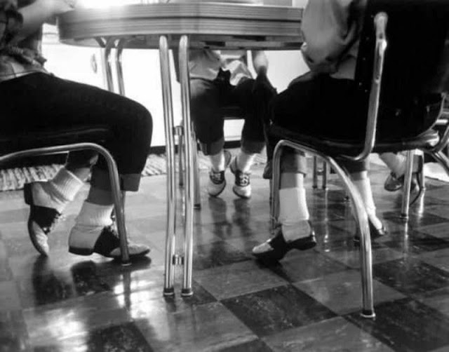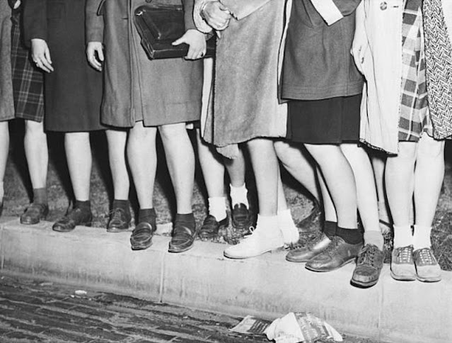 By the 1940s teenagers began pairing the shoes with ankle socks, worn folded or slouched depending on the fashion at the time, known as “bobby socks.” The media coined the term “bobby soxers,” a group referring to teenage girls “addicted to adolescent fads and crazes.”